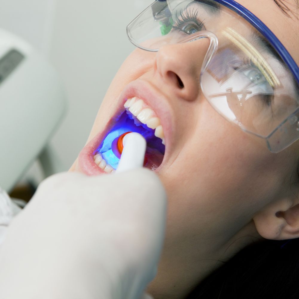 The most common materials used today for fillings and sealants are composite resin restorations. These are the white, tooth-colored materials that are skillfully placed by your dentist and “cured” with a bright blue light.